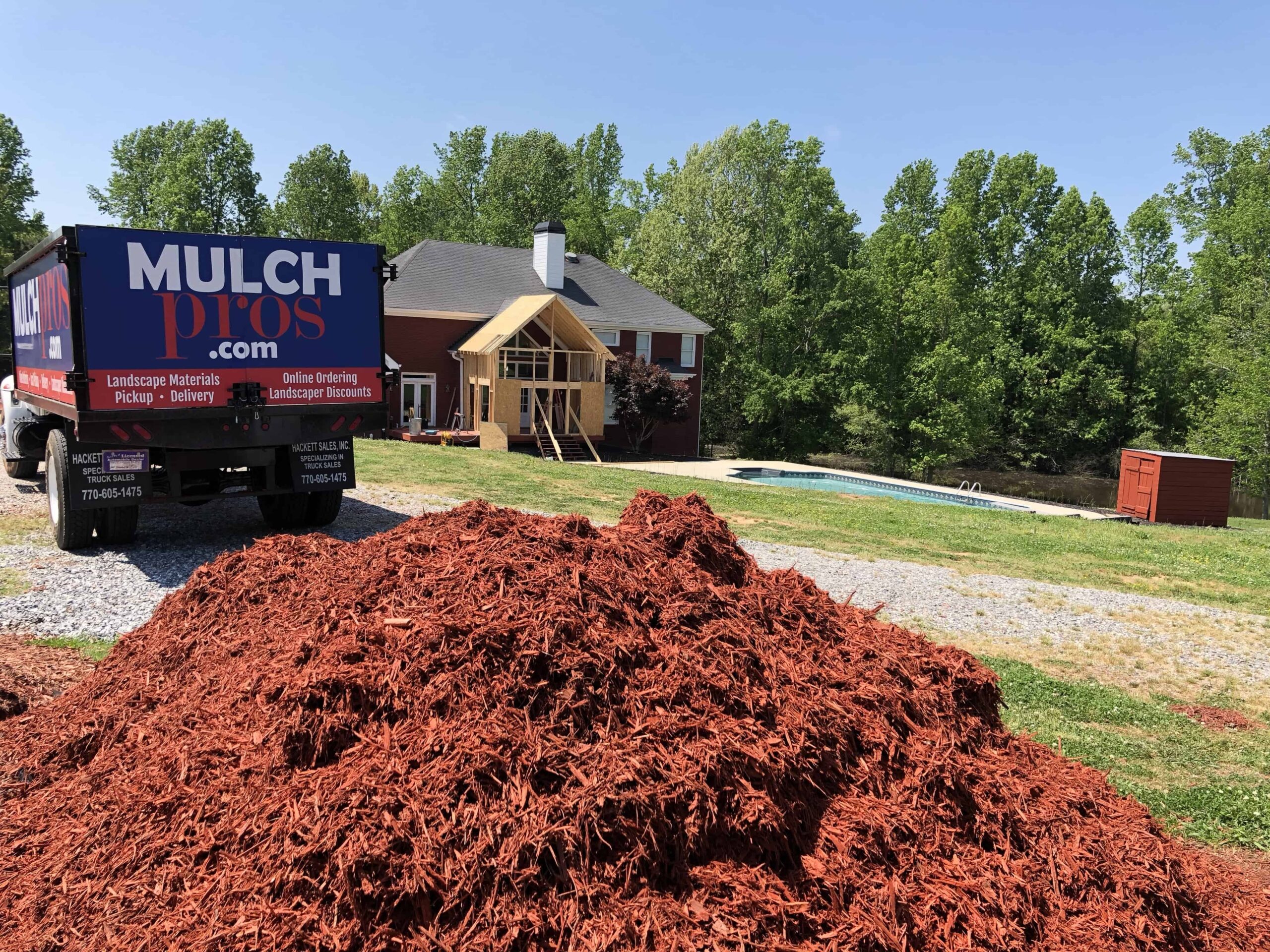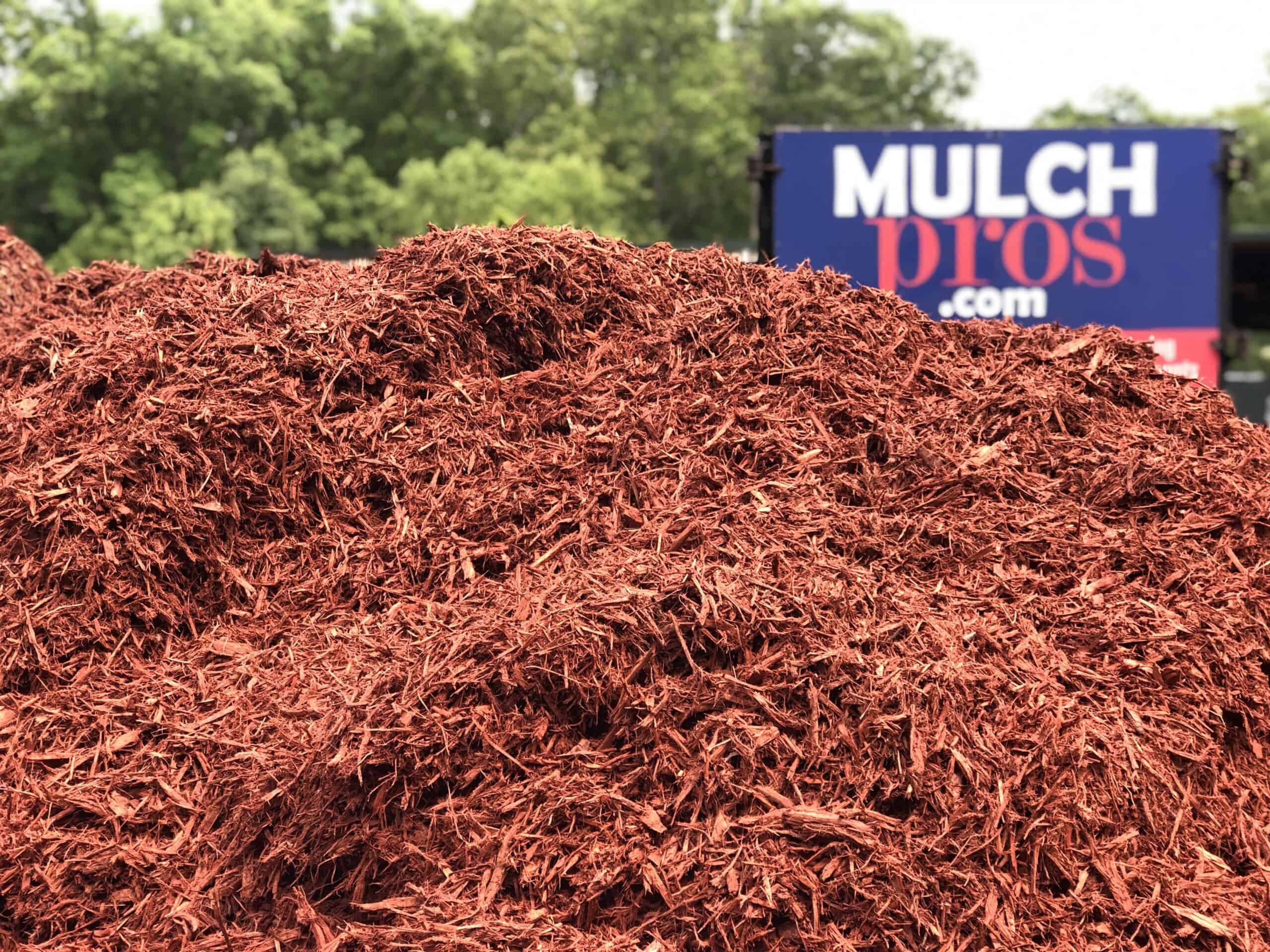 Made with all-natural, shredded forest products and long-lasting red colorant. Our color-enhanced landscape mulch is double shredded and screened for consistent 2-3″ shreds. All dyes used are pet-safe, non-toxic and biodegradable. Our red dyed mulch is an attractive groundcover for all your landscaping needs such as landscape islands, garden beds, and around trees. Our red mulch will give your gardens a rejuvenated and elegant look. The dye will last about one year if installed and maintained properly. It is important that dyed mulch gets at least 8 hours of dry time after installation to cure. For the longest-lasting color, we recommend turning your mulch over once every three to four months.